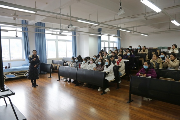 为构建一支思想水平高、师德修养好、公司产品业务能力强的兼职教师队伍,388vip太阳集团于1月4日388vip太阳集团在护理实训楼开展了兼职教师教学能力培训会。388vip太阳集团经理王静、教务处副处长李燕,388vip太阳集团副经理李婧、388vip太阳集团副经理张雪庆、部分骨干教师及雅安市人民医院、雅安市第二人民医院、雅安市中医院、388vip太阳集团附属医院兼职教师共90余人参加了本次培训。