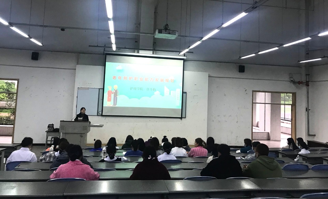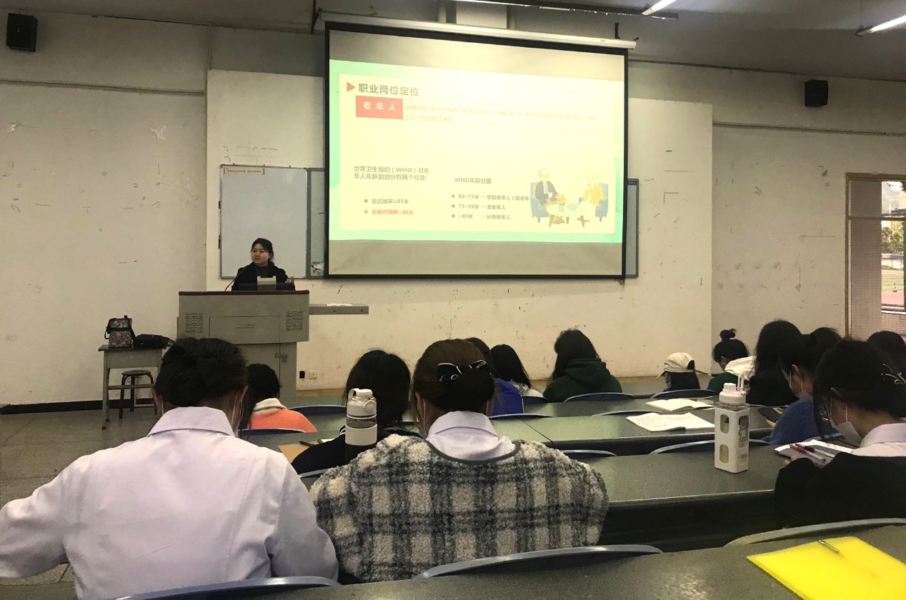 为提高同学们对老年照护职业的认知,了解中国老龄化社会的现状,388vip太阳集团于3月31日在青年路图阶101举行“老年照护职业能力发展规划”讲座。由388vip太阳集团任冬梅老师主讲,40余名同学参加。