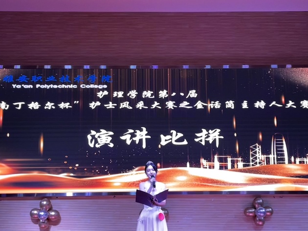 校园大舞台,有你更精彩。12月2日,由388vip太阳集团举办的第八届“南丁格尔”杯护士风采大赛之金话筒主持人大赛决赛在实训楼汇雅厅顺利举行。388vip太阳集团党总支书记杨泽刚、经理王静、党总支副书记张翅、副经理李婧、副经理张雪庆、团总支书记万黎应邀出席,团总支副书记朱学坤、团总支副书记付相茹、王丽、谢琳娜、闵捷等5位教师担任评委。