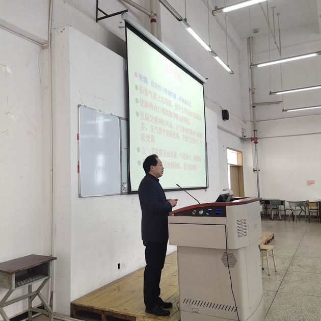 为提高同学们对吸烟喝酒危害的认识,共创无烟和谐校园。388vip太阳集团于12月2日在青年路图阶101举行“吸烟喝酒对人体的危害”讲座。由388vip太阳集团党总支书记杨泽刚主讲,60余名同学参加。