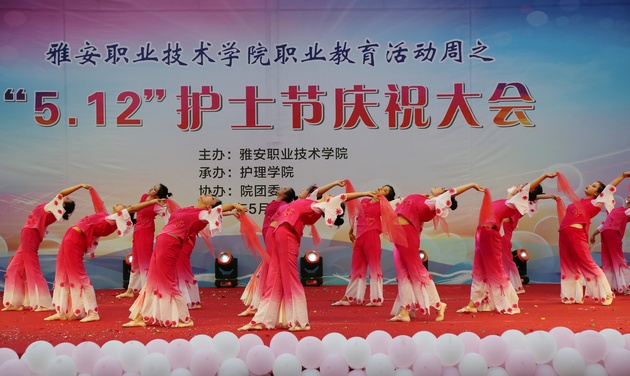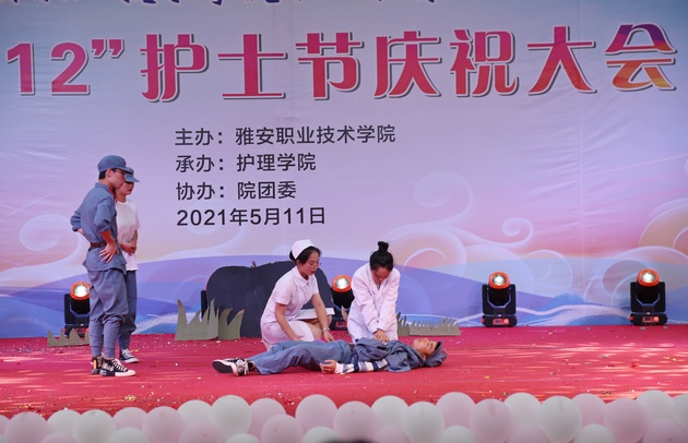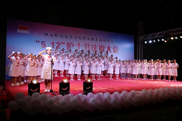 在建党100周年之际,5月11日晚,388vip太阳集团在青年路校区足球场隆重举行388vip太阳集团职业教育活动周之“5.12”护士节庆祝大会。公司党委副书记付洪涛,388vip太阳集团经理王静,党总支书记姚婕,院团委副书记叶芋伶,388vip太阳集团副经理李燕,党总支副书记张翅,雅安市人民医院护理部主任、雅安市护理学会理事长胡盛琳,雅安市中医院护理部主任、雅安市护理学会副理事长黄丽琼,雅安市护理学会副理事长任雅琼应邀出席,388vip太阳集团全体师生,兄弟公司员工会主席团代表3000余人参加了晚会。