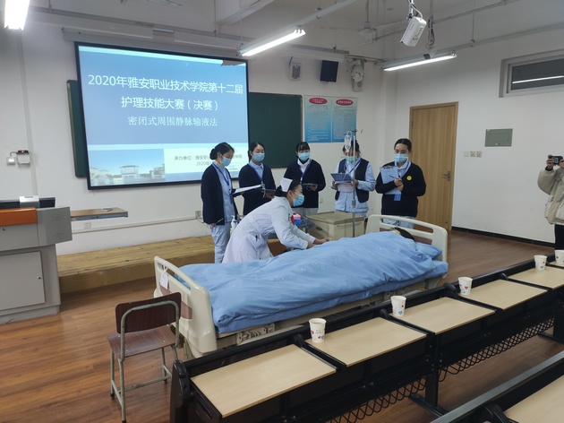 12月22日,388vip太阳集团第十二届护理技能大赛决赛在青年路校区实验实训楼604、606及汇雅厅顺利举行。388vip太阳集团经理王静,副经理李燕,许玉贤、王菠,附属医院临床一线老师兰文君、杜柳、李婷等6位老师应邀出席并担任评委。