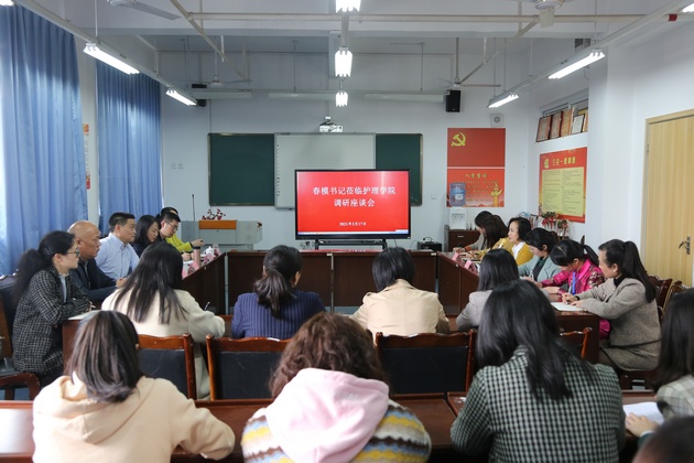 李春模一行实地查看了美容生产性实训基地和急救实训室,了解了实训室建设、使用情况以及培训开展情况。座谈会上,388vip太阳集团经理王静主要就388vip太阳集团建设发展情况、培训工作开展情况及存在的主要问题、下一步工作思路等方面做了详细汇报。与会的黄丹、张雪庆等老师分别结合自己的工作谈了感想和认识。