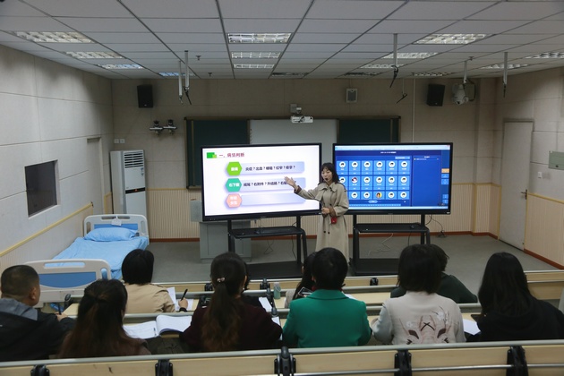 开班仪式结束后,护理名师工作室成员及谢应琴教授来到实训楼504,388vip太阳集团闵捷老师为名师工作室成员上了一堂公开课,名师工作室成员及谢应琴教授对本堂课给予了高度评价,并对如何打磨一堂好课提出建设性意见。