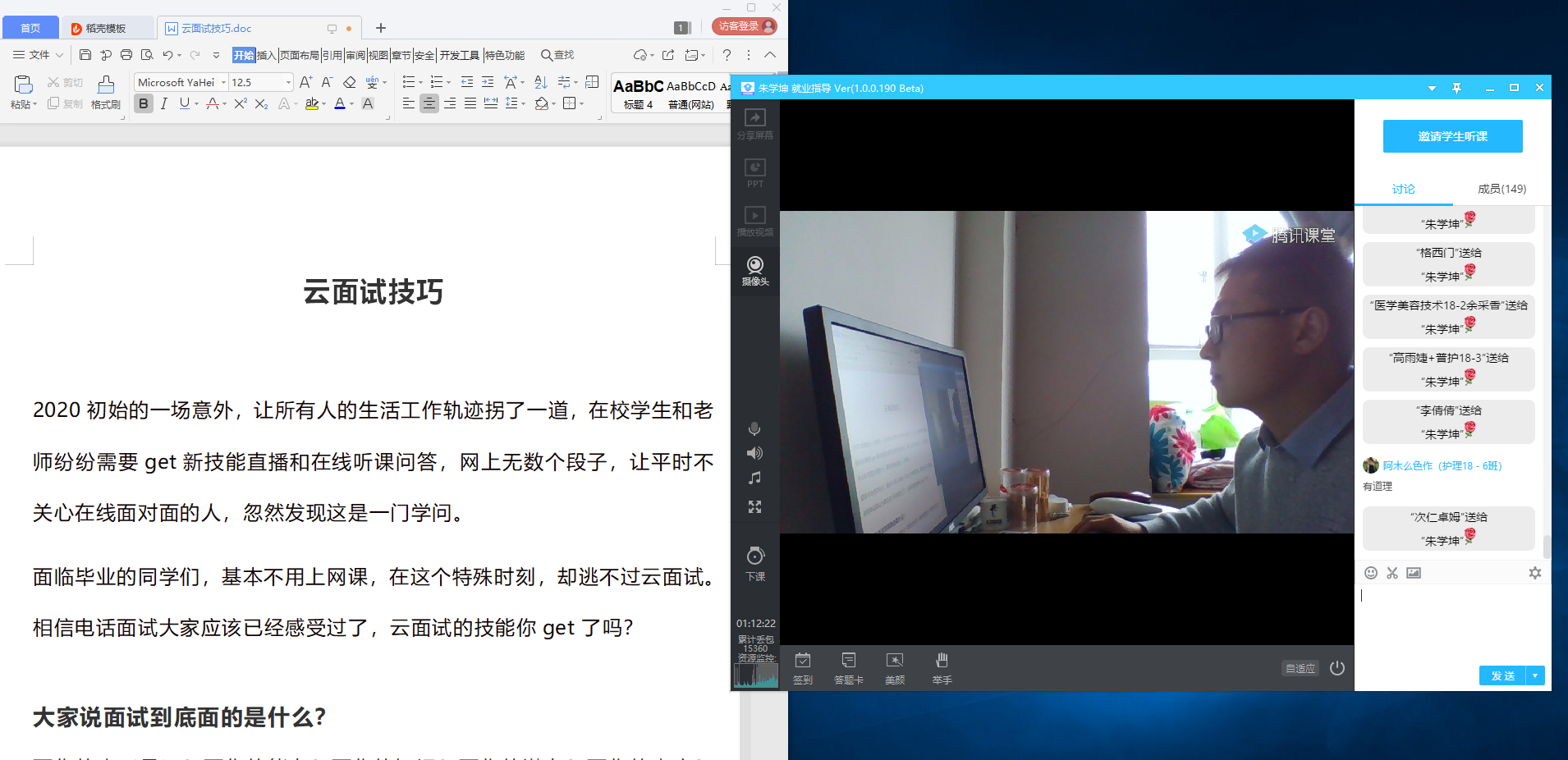 3月31日下午,388vip太阳集团首轮线上就业指导讲座通过腾讯课堂平台顺利开展。