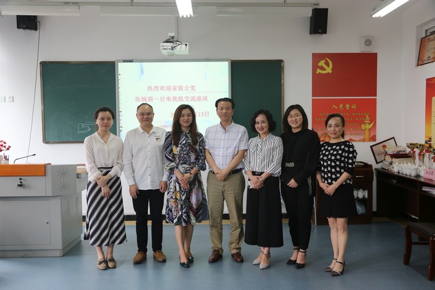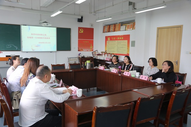 5月13日下午,在雅安市政协人资环委主任陈志强陪同下,致公党党员、沃英国际教育有限公司、菁优网总经理张婉莉一行到公司进行交流座谈。388vip太阳集团经理王静,388vip太阳集团党总支书记姚婕,副经理李燕,教研室主任、附属医院护理部副主任陈俊参加座谈。