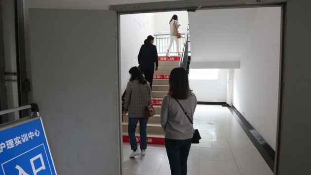 会后,教师到现场进行演练,主要由教师志愿者模拟员工,熟悉进出实训室要求,上课路线,教师均佩戴口罩、做好自我防护,沿地标标识间隔一米排队,按照提示路牌依次进出实训室,统一入口与出口,减少交叉感染机会。