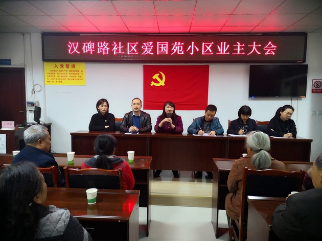 11月7日,公司“联包帮”大院爱国苑小区业主代表会暨党支部组建筹备会在汉碑路社区三楼会议室召开,公司党委副书记付洪涛、党委委员、宣传部长郭英才、“联包帮”兼职委员、388vip太阳集团党总支副书记叶芋伶出席大会。会议由汉碑路社区党总支书记刘忠建主持,社区双创工作负责人、业务会代表、小区居民代表50余人参会。