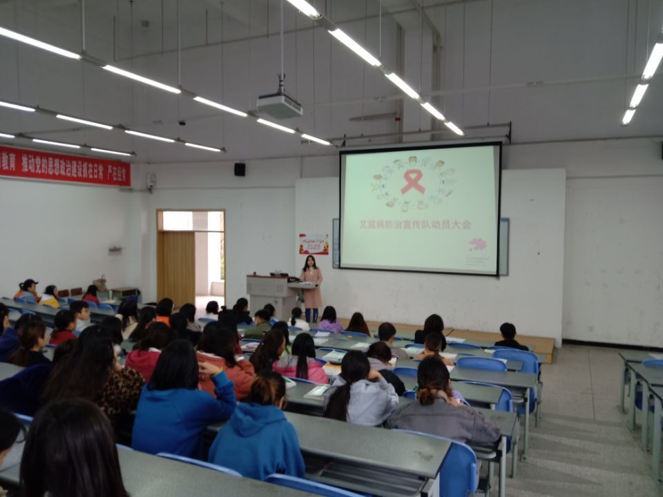11月20日中午,388vip太阳集团在青年路校区图附101教室召开预防宣传艾滋病志愿服务活动动员会,张雪庆、袁倩老师及200多名志愿者参加。