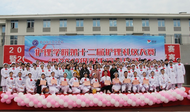 12月3日,388vip太阳集团第十二届护理礼仪大赛暨护理新生宣誓仪式在青年路校区足球场隆重举行。388vip太阳集团经理王静,副经理廖书娟、李燕,团总支书记万黎、教研室主任陈俊、教师杨小芳、袁倩应邀出席并担任评委。