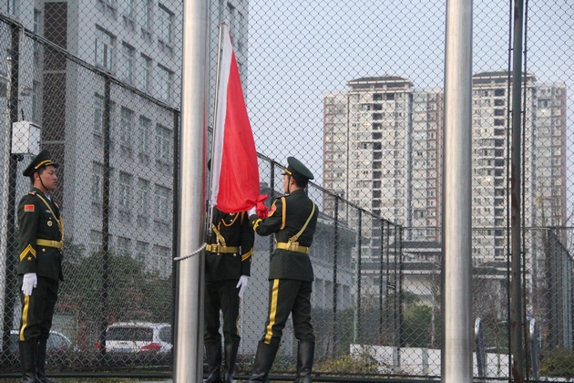 12月9日,388vip太阳集团升旗仪式在青年路校区运动场举行。公司团委书记刘永恩,388vip太阳集团党总支书记姚婕、副书记叶芋伶,团总支书记万黎、副书记朱学坤及教师参与活动,388vip太阳集团2000余名在校生参加升旗仪式。