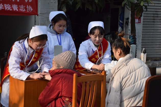 12月10日,388vip太阳集团教师周晓琴、戴晨茜带领12名志愿者在先锋小区开展了以“携手社区,共筑健康家园”为主题的爱心义诊活动。