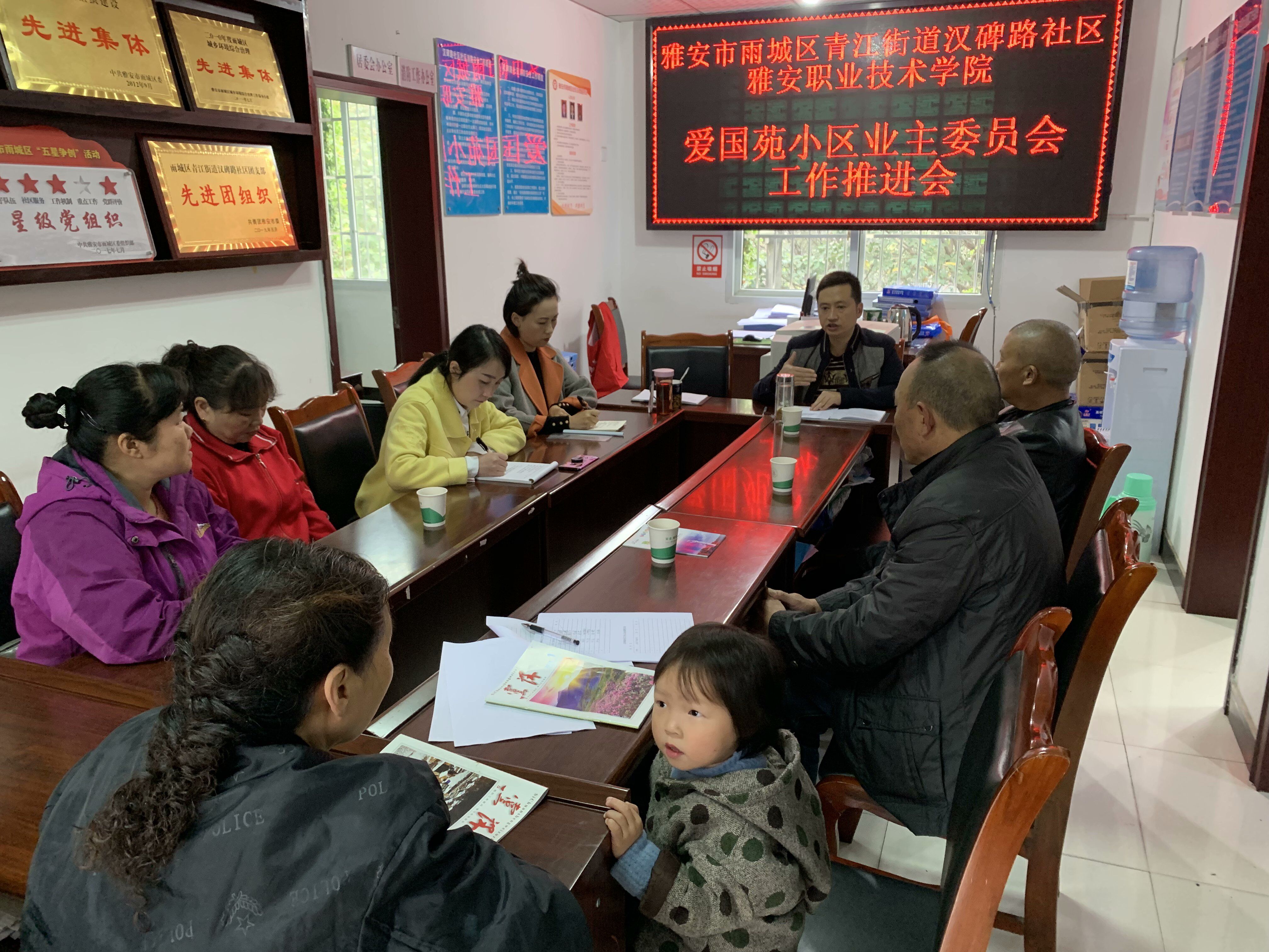 经讨论,会上拟定11月7日晚召开爱国苑小区业主大会,向小区居民再次深入宣传雅安双创工作,进一步争取居民的支持和配合,同时就业委会换届选取、小区自管自治等相关工作广泛听取意见建议。
