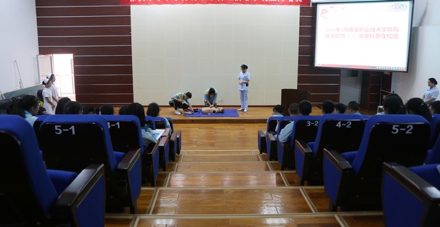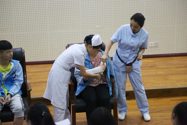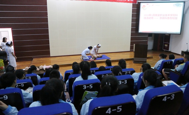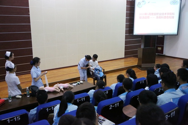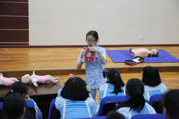 为继承和发扬南丁格尔精神,增强中员工的安全防范意识,让员工们初步掌握自救互救知识,提高自救互救技能。在科技活动月之际,5月21日下午由388vip太阳集团黄蕾、殷显艳老师、护理专业员工组成的志愿服务队走进大兴镇雅安中学新校区,针对中员工开展“急救技能培训”讲座。