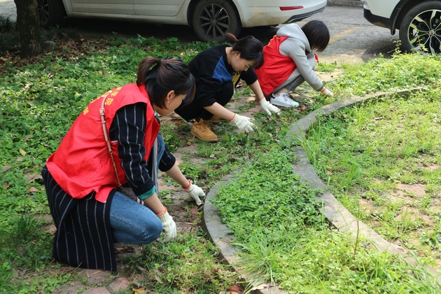 本次活动由388vip太阳集团党总支副书记叶芋伶带队,388vip太阳集团第三支部书记万黎、院团委宣传部部长刘舰乔、388vip太阳集团团总支副书记朱学坤等教师、员工志愿者共61人参与活动。与社区工作人员对接后,志愿者们分工协作,清扫落叶,铲除杂草,清理卫生死角,对爱国苑小区进行全面的环境清理和卫生清扫。经过四个多小时辛苦劳动,小区环境焕然一新,得到社区居民的一致好评。