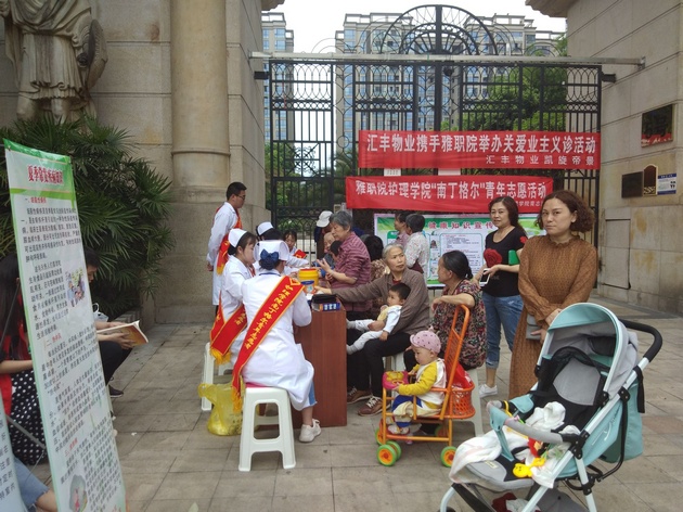 4月23日,388vip太阳集团青志协在教师党员王菠带领下来到凯旋帝景小区开展了“践行义诊守健康,爱心传递显真知”义诊活动。