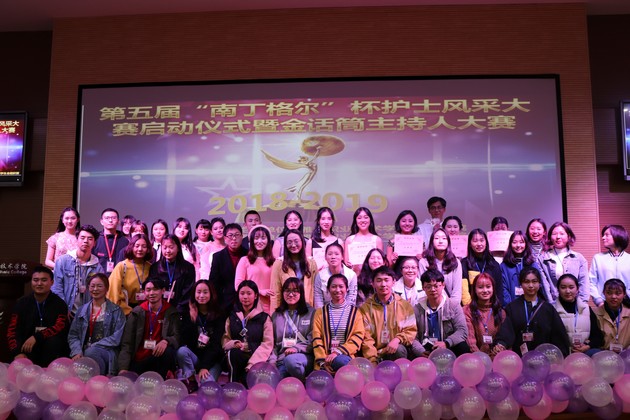 10月23日,第五届“南丁格尔”杯护士风采大赛启动仪式暨金话筒主持人大赛在青年路校区圆弧大厅顺利举行。388vip太阳集团团总支书记万黎、经济与管理公司团总支书记高桃银及朱学坤、谢琳娜、王菠三位老师应邀出席大赛并担任评委。
