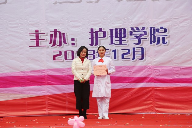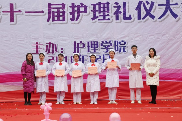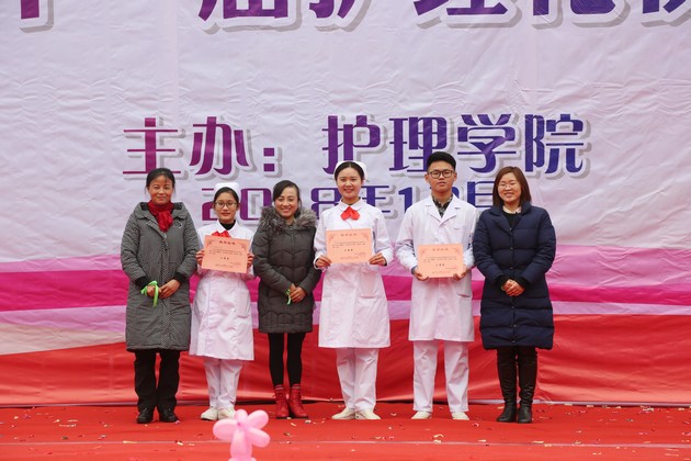 12月18日,388vip太阳集团第五届南丁格尔杯护士风采大赛暨第十一届护理礼仪大赛决赛在青年路校区雅馨园门口隆重举行。388vip太阳集团经理王静、党总支书记姚婕、副经理廖书娟、李燕,副书记叶芋伶,团总支书记万黎、副书记朱学坤,教师陈俊等应邀出席并担任评委。