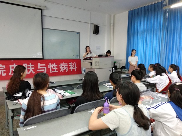 为了响应"5.25国际爱肤日",提高同学们的护肤意识,388vip太阳集团附属医院的牟双梦和黎薇两位老师在青年路校区教学楼B205开展美容护肤讲座。本次讲座由护理系党支部副书记李敏主持,共有医学美容技术、护理等专业108名同学参加。