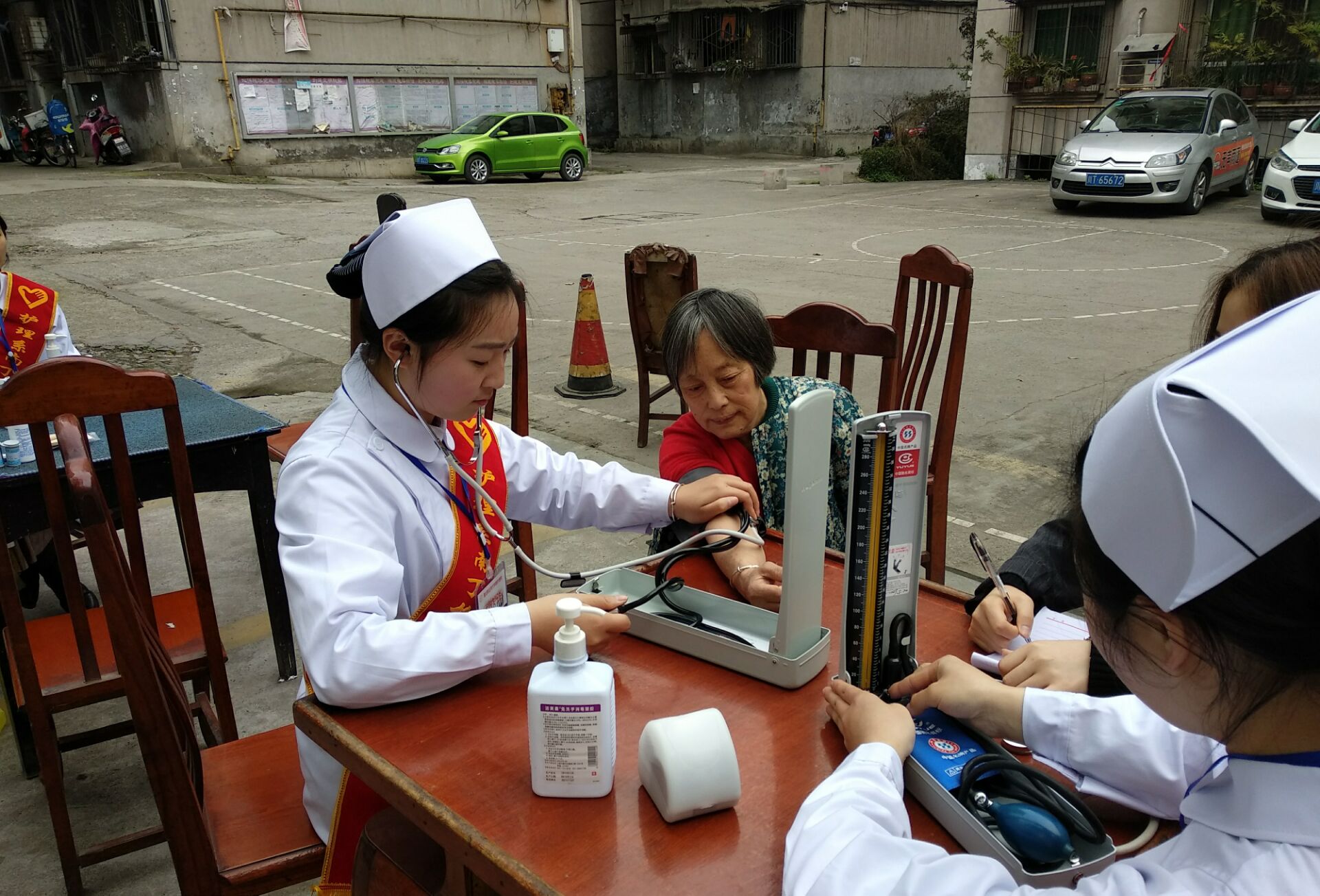 各项工作井然有序的开展,志愿者们运用护理专业知识,为前来的老人们贴心服务。一些老人行动不便,志愿者们细心的搀扶,当面对检测结果有疑问的老人时,老师们也都做出了专业的解释与指导。最后,两位老师为老人们开展了“流感的控制与预防”健康知识宣讲活动,居民们纷纷表示受益匪浅。