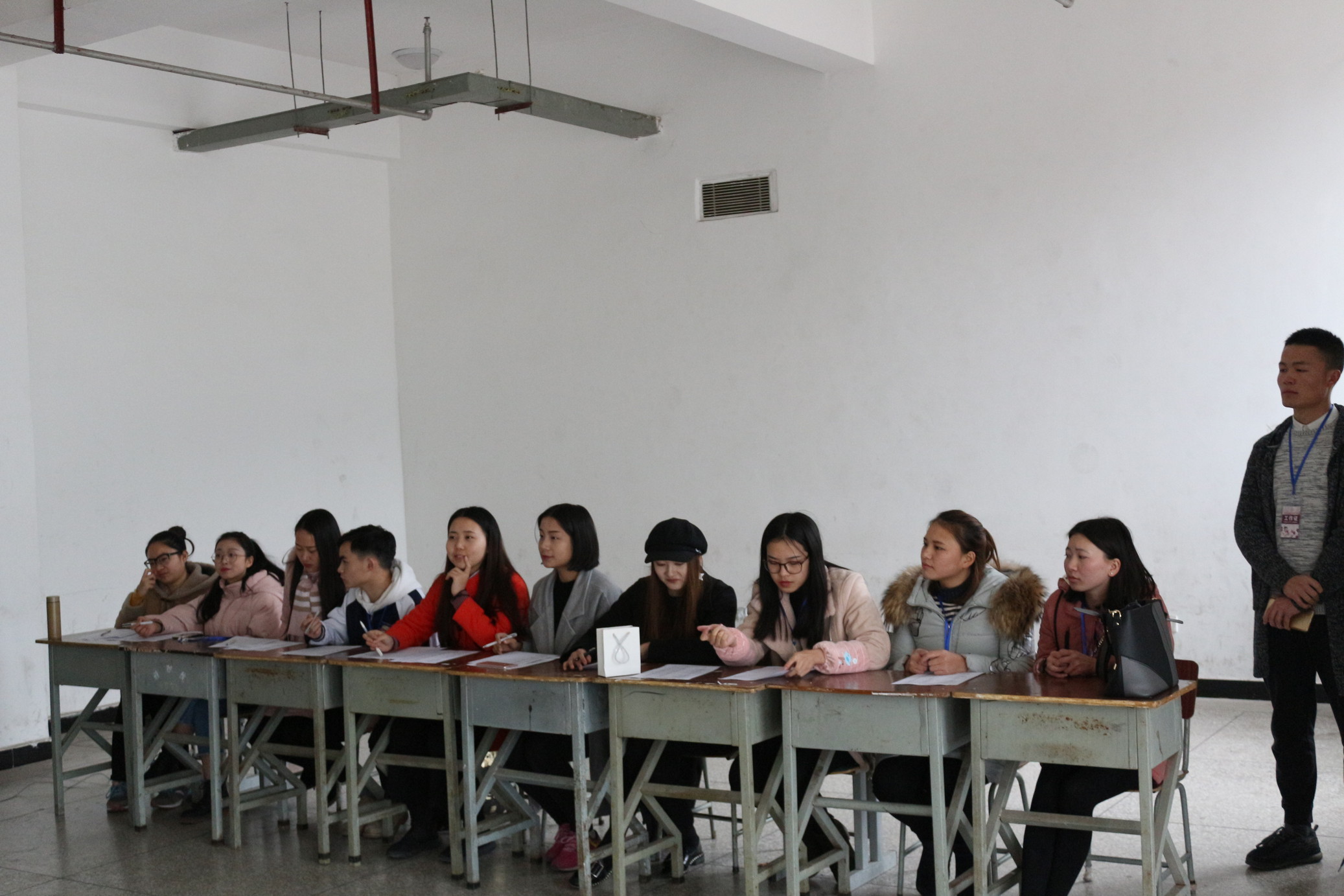 12月12日中午,护理系2018年迎新年晚会节目初选在图书综合楼玻璃房顺利举行。护理系主席团及各部门部长出席了本次活动并担任评委。
