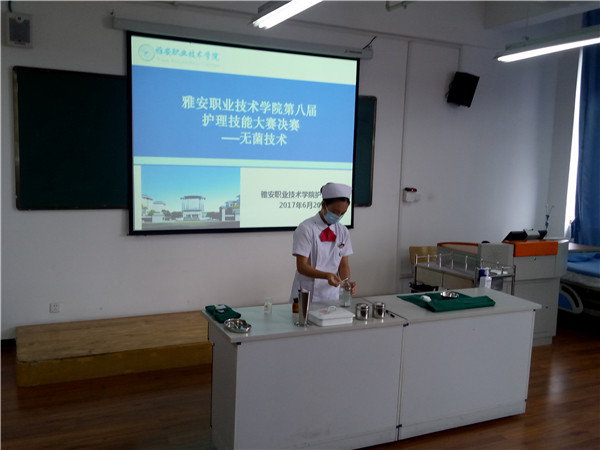 为提高同学们的操作能力, 6月20日中午,护理系在实训楼5、6楼举行了护理技能大赛决赛。公司附属医院护理部主任冯贤萍、护士长任琼,护理系教研室主任陈俊、实训中心主任李婧等担任本次比赛的评委。