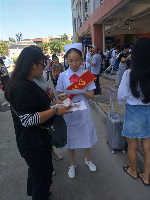 护理系志愿者的良好面貌,充分展现了护理工作人员的细心、耐心、责任心,让新生们感受到护理系师生们的热情。