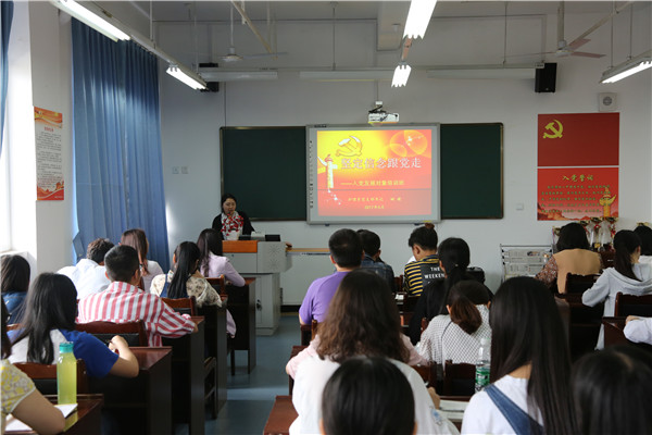 2017年5月15日中午,护理系入党发展对象培训班在实训楼607开班。护理系党支部书记姚婕,党支部副书记李敏,支部委员,护理系、旅经系入党发展对象参加培训会。会议由李敏同志主持。