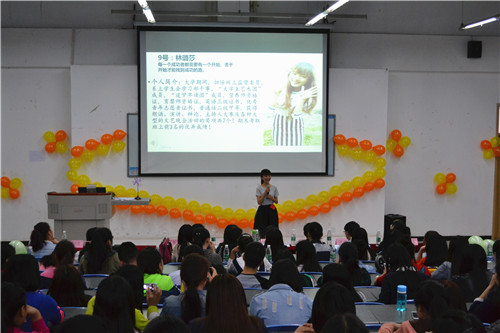 在我系文娱部一段精彩的开场舞及王静主任上台为大赛致词之后,比赛正式拉开帷幕。此次决赛共分为3个环节:分别是自我介绍及问答、观众互动、才艺表演。第一环节,各参赛选手依次按序自我介绍完毕后,对自己所抽的问题发表了自己独到的见解,而面对评委的提问,他们反应迅速,机智应答,展现了自己灵活敏捷的思维。同时,评委根据选手们的回答情况,给出了相应的指导与建议。第二项有奖竞猜互动环节中,现场观众积极踊跃,争相抢答,活跃了现场紧张的气氛。第三环节便是最让人期待的才艺表演,参赛选手带来的合唱、诗歌朗诵、演讲、小品等表演节目点燃了现场的气氛,高潮迭起,精彩不断。9号选手林璐莎在众多选手中脱颖而出,夺得桂冠,并另外颁发二等奖2名,三等奖3名,优秀奖6名。随后,比赛在隆重的颁奖典礼中落下帷幕。