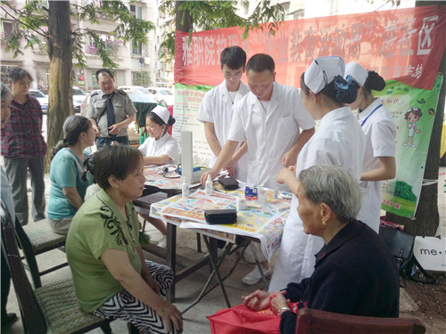 此次义诊活动的项目包括为:测血糖,测血压。一到社区便吸引了众多的居民前来测量,志愿者们操作娴熟,细致地为前来的人们做检查、讲解,并进行健康知识宣教。同时为了缓解他们的紧张心情,志愿者们温柔耐心地跟居民交流,得到了爷爷奶奶们会心的微笑和由衷的感谢。