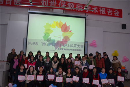 1月7日14:30,由护理系主办的第二届“南丁格尔”杯护士风采大赛之寝室文化设计大赛暨优秀寝室颁奖典礼在青年路校区图阶101教室隆重举行。出席此次典礼的嘉宾有:护理系主任王静、副主任廖书娟、党支部副书记李敏、团总支书记万黎、副书记陈静,辅导员李扬、饶玲、邓蓓、陈蕾、唐佳、高佳慈等多位老师。