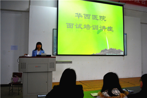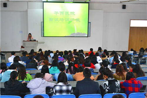 为提高同学们的面试技巧,且顺利通过华西医院的面试。3月15日15:30,我系针对即将实习的大二员工,在青年路校区阶梯101举行了华西医院面试培训讲座,员工会主席团以及报名参加面试的100余位同学参加讲座,护理系闵捷老师主讲。