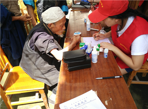 2015年7月16日早上8:00,在系团支部副书记万黎老师等指导老师的带领下,我系“南丁格尔志愿服务团队”一行共11人,来到了雅安市名山区前进乡敬老院,开展了第一天的暑期“三下乡”活动。