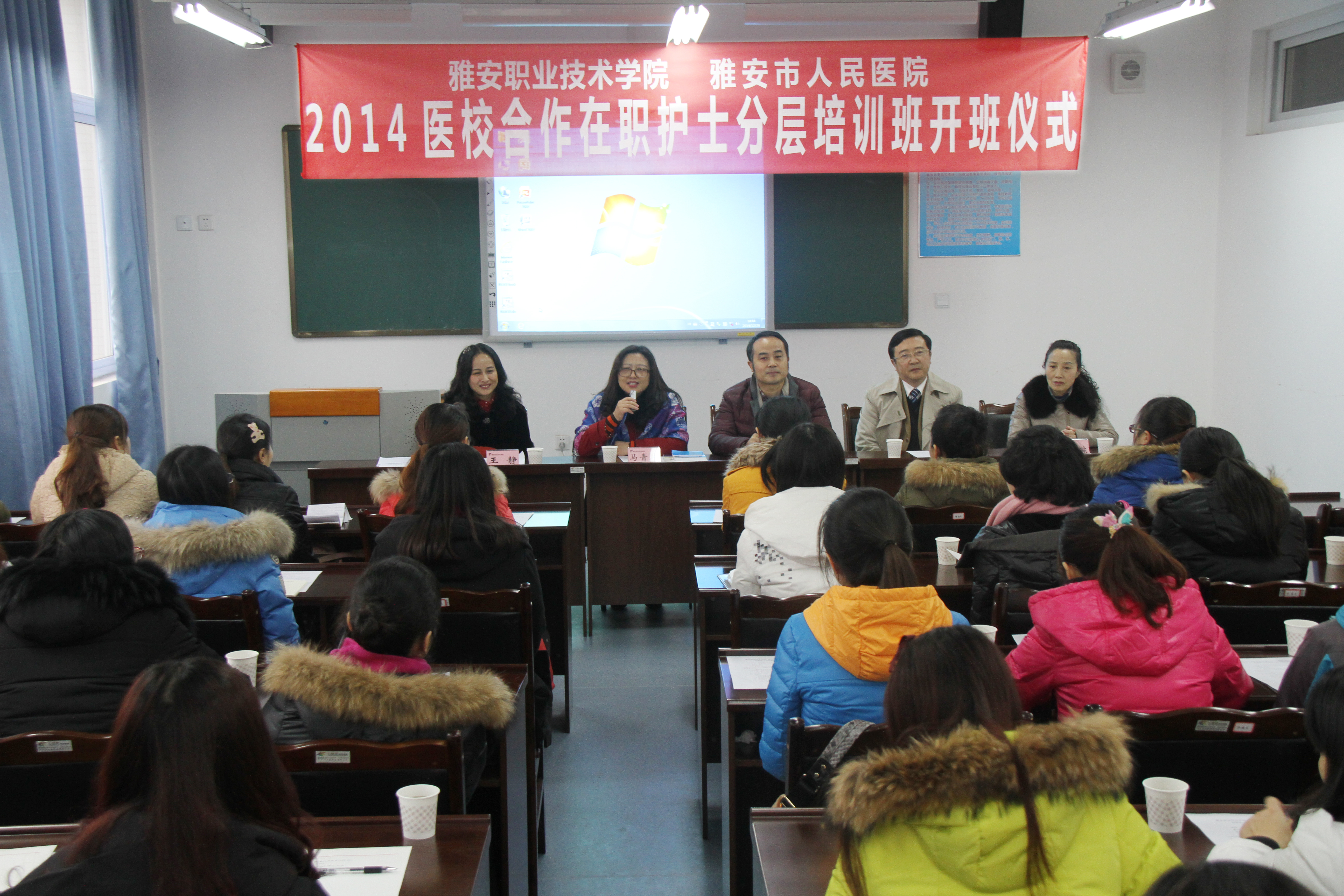 12月26日下午两点半,“388vip太阳集团、雅安市人民医院2014医校合作在职护士分层培训开班仪式”在青年路实验实训楼607教室隆重举行。公司张大凯书记、雅安市人民医院邱雄经理、四川省人民医院重症监护室马清华护士长,雅安市人民医院护理部黄丽琼护士、我系部门负责人等与公司附属医院和雅安市人民医院N2级别的45名护士参加了开班仪式。系主任王静主持开班仪式。