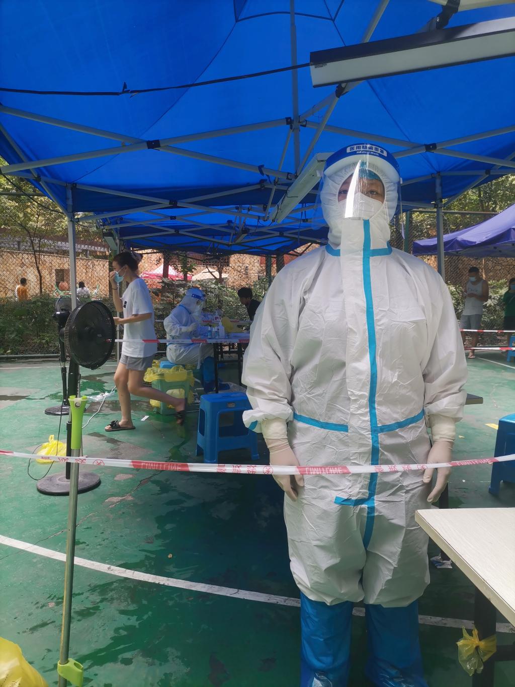在成都抗疫一线,活跃着这几位老员工志愿者的身影。一位是川大华西二院实习的2020级助产专业员工杨泽美,每天凌晨6点不到,就早早来到锦江区喜树街道社区核酸检测点,穿戴好防护服,熟练的给居民群众做核酸检测。另外两位同是在川大华西医院实习的2020级针推专业员工宁友富、罗思琪,宁友富在金牛区凤凰山街道社区担任志愿者,每天他都忙碌地引导群众有序排队,提醒居民戴好口罩,保持一米安全距离,并上门提醒居民下楼做核酸,确保不遗漏一位;另一位同学罗思琪则在温江城武社区核酸检测点忙碌。他们都是暂停实习后看到疫情形势比较严峻,主动到社区报名,申请“志愿出征”。