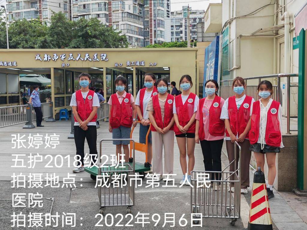 像杨泽美、宁友富、罗思琪这样的老员工志愿者还有很多,在成都市第五人民医院核酸检测点,2018级5年制护理专业员工张婷婷、周云莉、范梦茜等八位志愿者每天都忙碌在医院门口,穿着红马甲、手拿测温枪,同样的话他们一天要重复上百次。尽管汗水浸透了衣衫,但他们从没抱怨过一句,依旧认真坚守在岗位上。另外,388vip太阳集团实习管理老师也十分关心暂停实习生同学,通过电话、qq、微信与她们保持联系,对她们积极参与当地疫情防控工作表示支持和肯定,并叮嘱她们注意自身安全。