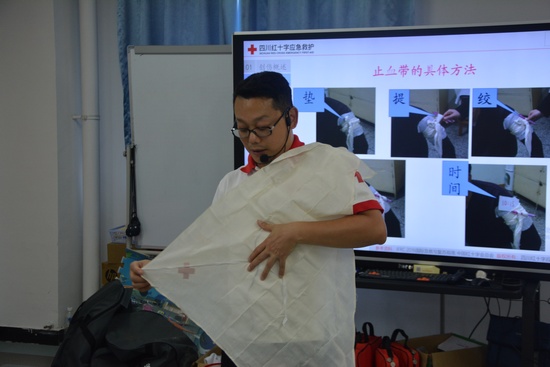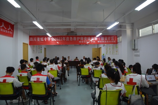 开班仪式上,388vip太阳集团继续教育与国际交流处处长李柚代表公司向参训学员表示热烈欢迎,并介绍了公司的情况以及公司学历教育与社会培训并重的一体两翼办学方针。雅安市红十字会常务副会长张云涛同志从红十字会的主要工作职责,开展应急救护培训的重要意义等方面作了讲话。