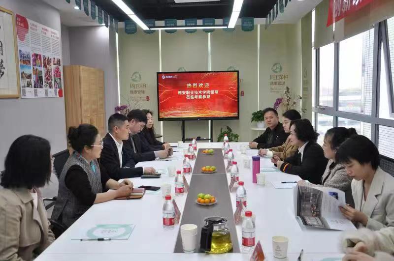 参观结束后,公司董事长王聚和、副总裁潘学强、张红利、总经理黎青青、人事部曾艳与走访团队召开了座谈交流会,交流会上双方就人才培养、校企合作、实习就业等工作进行深入交流,并希望在接下来的合作中双方扩大交流、深化合作实现双赢。座谈会后,王静经理带领团队到社区固正保和公司经营点,进行实地考察。