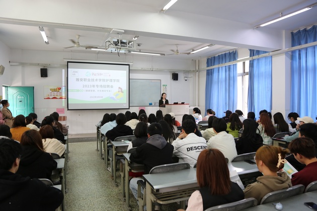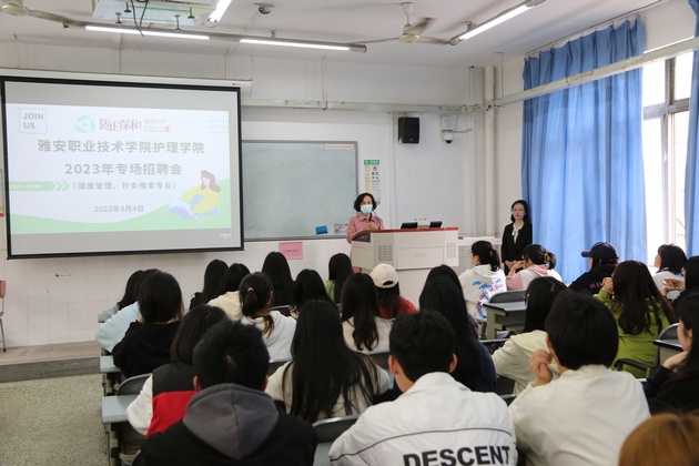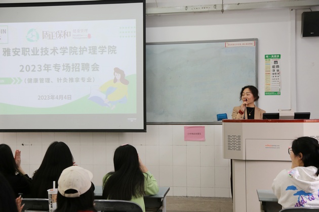 为更好满足员工就业创业和企业招聘人才需要,增强员工就业知识,提升就业技巧。4月4日,成都固正保和健康科技有限公司在公司青年路校区教学楼B305举行针对健康管理、针灸推拿专业的专场招聘会。公司总经理黎青青、焦永福、人事部曾艳,388vip太阳集团王静经理、教师殷显艳、李爽镜,健康管理、针灸推拿专业约120名员工参与此次招聘会。