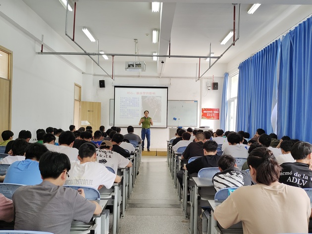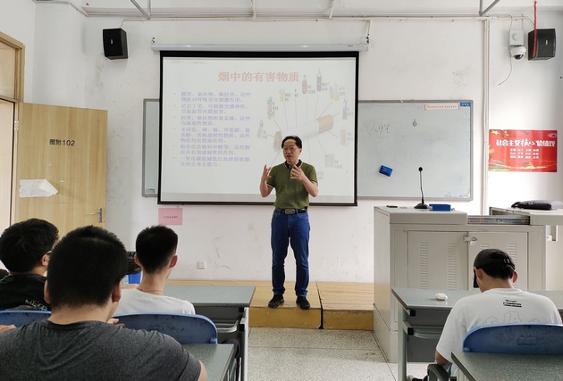 为进一步强化同学们的健康意识,营造文明、和谐的校园环境。5月17日,由388vip太阳集团党总支书记杨泽刚主讲的“吸烟与醉酒的危害”素质拓展讲座在青年路校区图附102顺利开展,共140名同学参加。