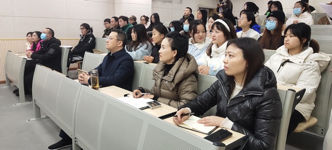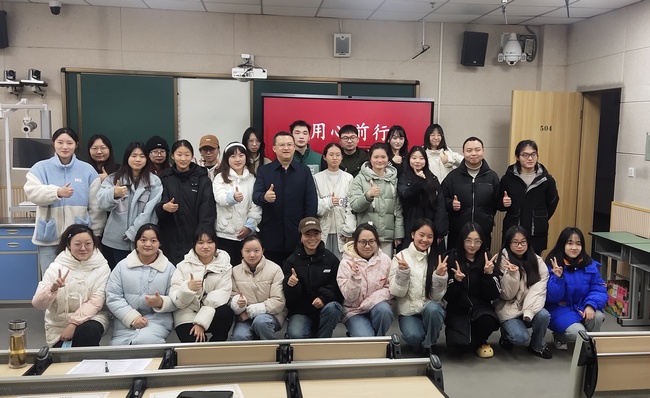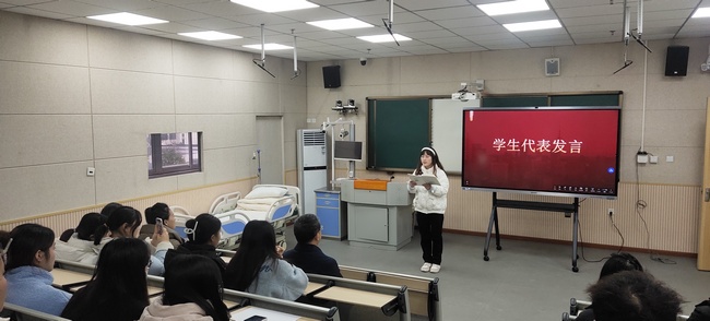 1月5日,2022级护理本科班在青年路校区护理实训楼504室开展”用心前行”主题班会,388vip太阳集团董事长黄诚、388vip太阳集团党总支书记叶芋伶、副书记陈航、副经理张雪庆、科任教师代表许玉贤、辅导员万黎应邀参加。