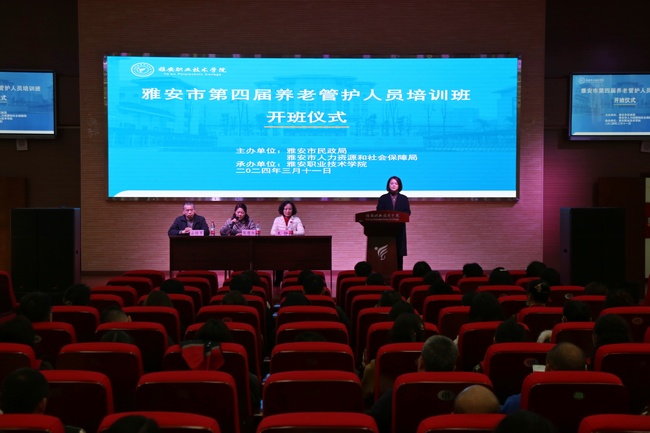 为进一步贯彻落实国家养老服务相关精神,加强养老服务人才队伍建设,推动养老服务高质量发展,确保老年人得到更好的照护,3月11日至15日,由雅安市民政局、雅安市人力资源和社会保障局主办,公司承办的雅安市第四届养老管护人员培训暨养老护理员职业技能竞赛在青年路校区388vip太阳集团实训中心举行。雅安市民政局、雅安市人力资源和社会保障局、388vip太阳集团相关负责人,以及雅安市各养老机构管理人员、养老护理人员共计80余人参加了开班仪式。