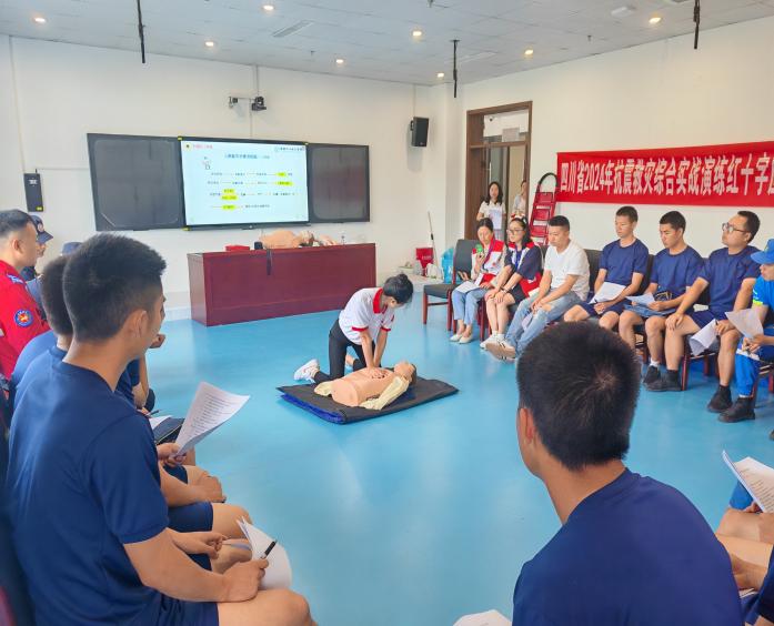 6月23日,四川省2024年抗震救灾综合实战演练红十字应急救护培训在四川省区域性应急救援雅安基地开展,388vip太阳集团5名教师担任此次培训主讲教师,为来自省内各地的9支社会力量救援队伍及市、县(区)应急局干部职工开展心肺复苏(CPR+AED)培训。