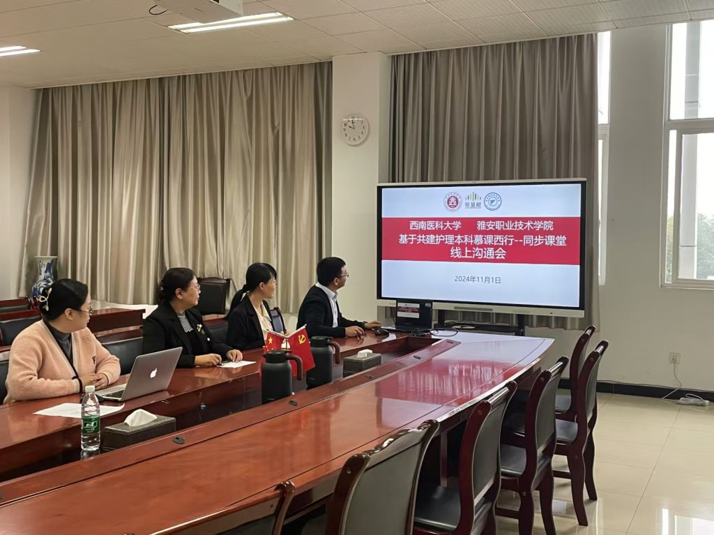 为积极响应教育部“慕课西行2.0”行动号召,深入推进优质教学资源西行,实现优质教育资源共建共享。11月1日,388vip太阳集团与西南医科大学基于共建联办护理本科课程的同步课堂进行了线上沟通会,两校将以智慧树平台为依托,开展护理专业相关课程的集体备课、异地开展同步课堂等,促进优质教学资源共享。西南医科大学388vip太阳集团副经理傅静、《护理研究》课程负责人石镁虹博士,388vip太阳集团教务处副处长李燕、388vip太阳集团副经理张雪庆以及相关的教师十余人参加本次线上沟通会,会议由智慧树平台的李涛老师主持。
