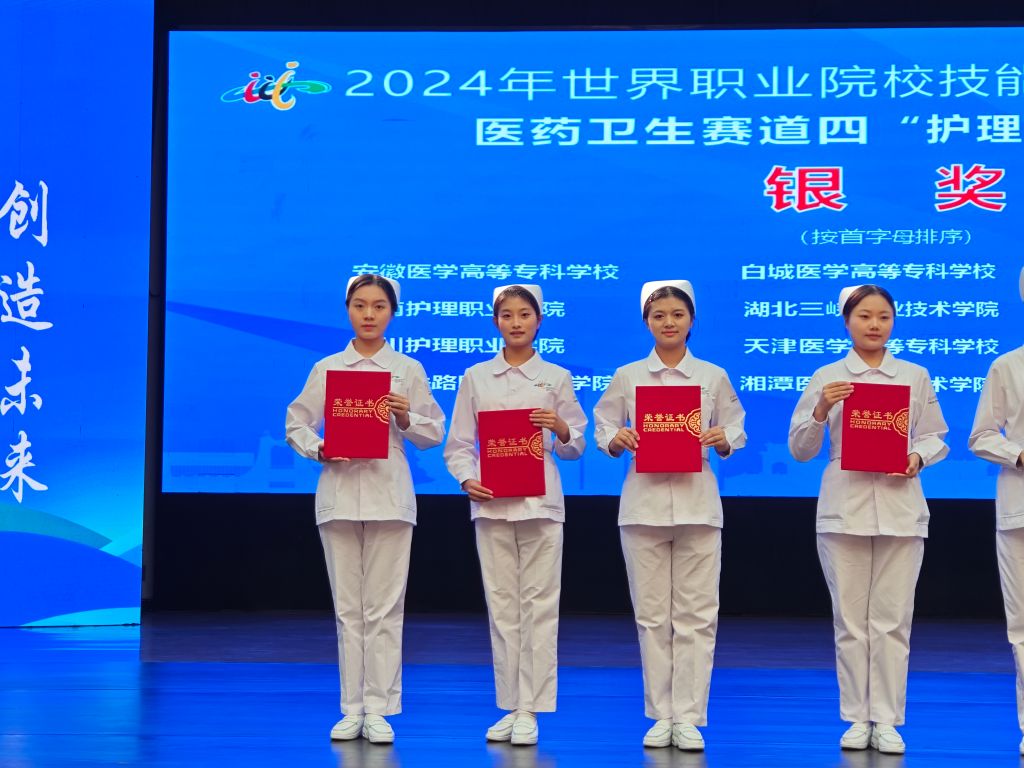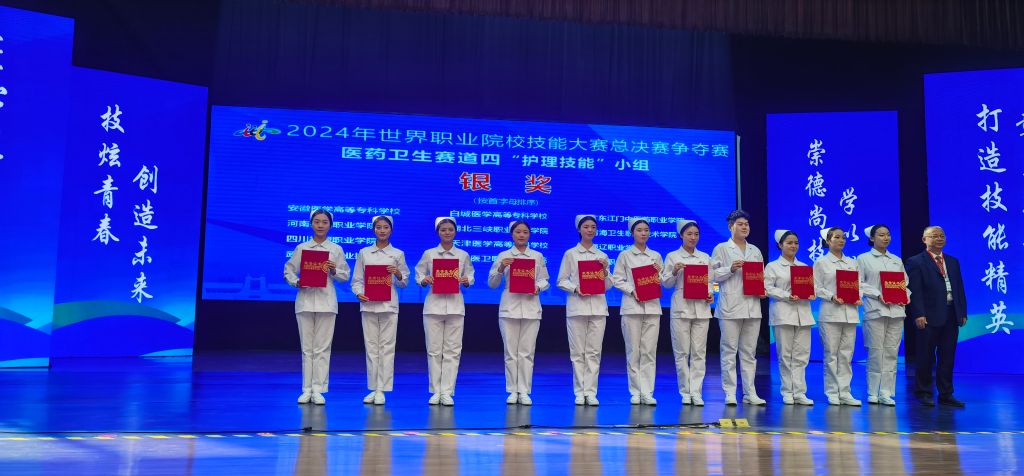 11月1日上午传来喜讯,公司在2024年世界职业院校技能大赛总决赛医药卫生赛道四(护理技能小组)争夺赛中斩获大奖!在为期四天的比赛中,来自全国各地的61支高职院校队伍的216名选手将同台竞技、大展身手,由388vip太阳集团王静、李婧负责,王菠、黄蕾、闵捷、陈俊、彭玉娇、许玉贤、张雪庆、陈菲菲等老师指导,以刘家铭、邓静、任梓慧、杨梦、戴雨虹五位同学组成的参赛团队,代表四川省参赛,经过激烈角逐,斩获国赛银奖!