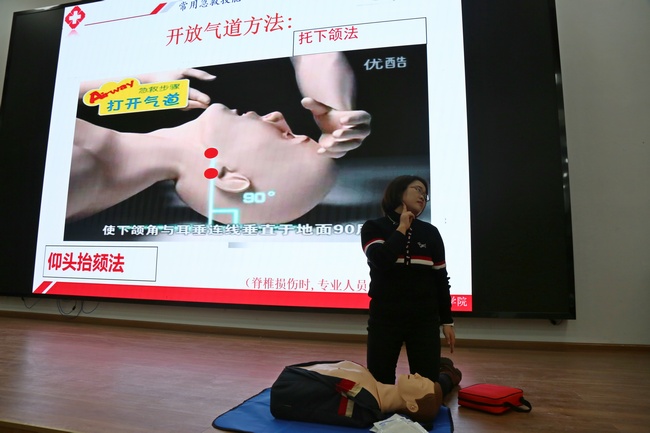 此次活动旨在倡导青少年从身边做起,增强防范和应对灾害风险的意识,提高急救减灾的技能。活动中,李燕结合川西地区灾害多发的特点,以《泥石流等地质灾害发生如何自救》为题,以小视频故事引出主题,通过角色扮演、互动体验等多种方式与师生们热烈交流。张雪庆以《常用急救技术普及》为题,结合实际案例,以场景模拟、互动教学、学员亲身体验等多样化模式,围绕心肺复苏、自动除颤仪使用、海姆利克急救技术等内容进行详细讲解,帮助大家在遇到突发情况时能够准确迅速采取有效急救措施,为日常学习生活提供有力健康保障,增强风险防范意识。此外,李婧和罗开中两位教师还在现场进行了实操指导,确保大家能够真正掌握这些技能。