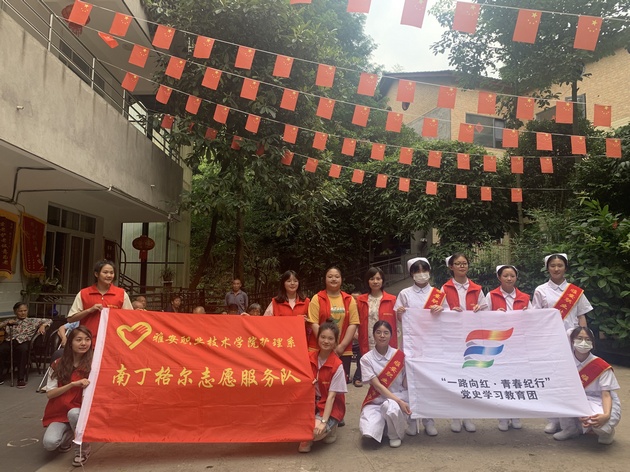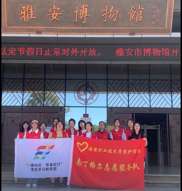 7月5日至6日,388vip太阳集团南丁格尔志愿服务队分别在雅安市博物馆、雨城区孝廉社区、草坝社区赋济堂养老院开展了以"一路向红,青春纪行"为主题的暑期"三下乡"社会实践活动。388vip太阳集团团总支书记万黎、副书记朱学坤带队,12名志愿者参加。