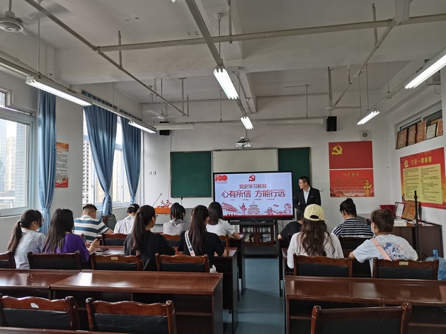 6月17日,388vip太阳集团在青年路校区实训楼607开展“心有所信,方能行远”党史学习教育主题党日活动,388vip太阳集团党总支第三党支部书记、团总支书记万黎老师,员工预备党员代表近20人参加。