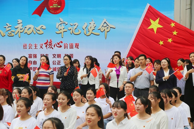 9月29日,为庆祝新中国诞辰70周年,结合“不忘初心,牢记使命”主题教育活动,388vip太阳集团党总支等三个党组织与党建联建社区汉碑路社区党总支在爱国苑小区一同开展庆祝建国70周年“我和我的祖国”主题党日系列活动。公司经理石静,党委副书记付洪涛,党委委员夏安琼,388vip太阳集团党总支、药检公司党总支、机关后勤党总支第二党支部党员,汉碑路社区党总支党员、居民代表及员工代表80余人参加主题党日活动。