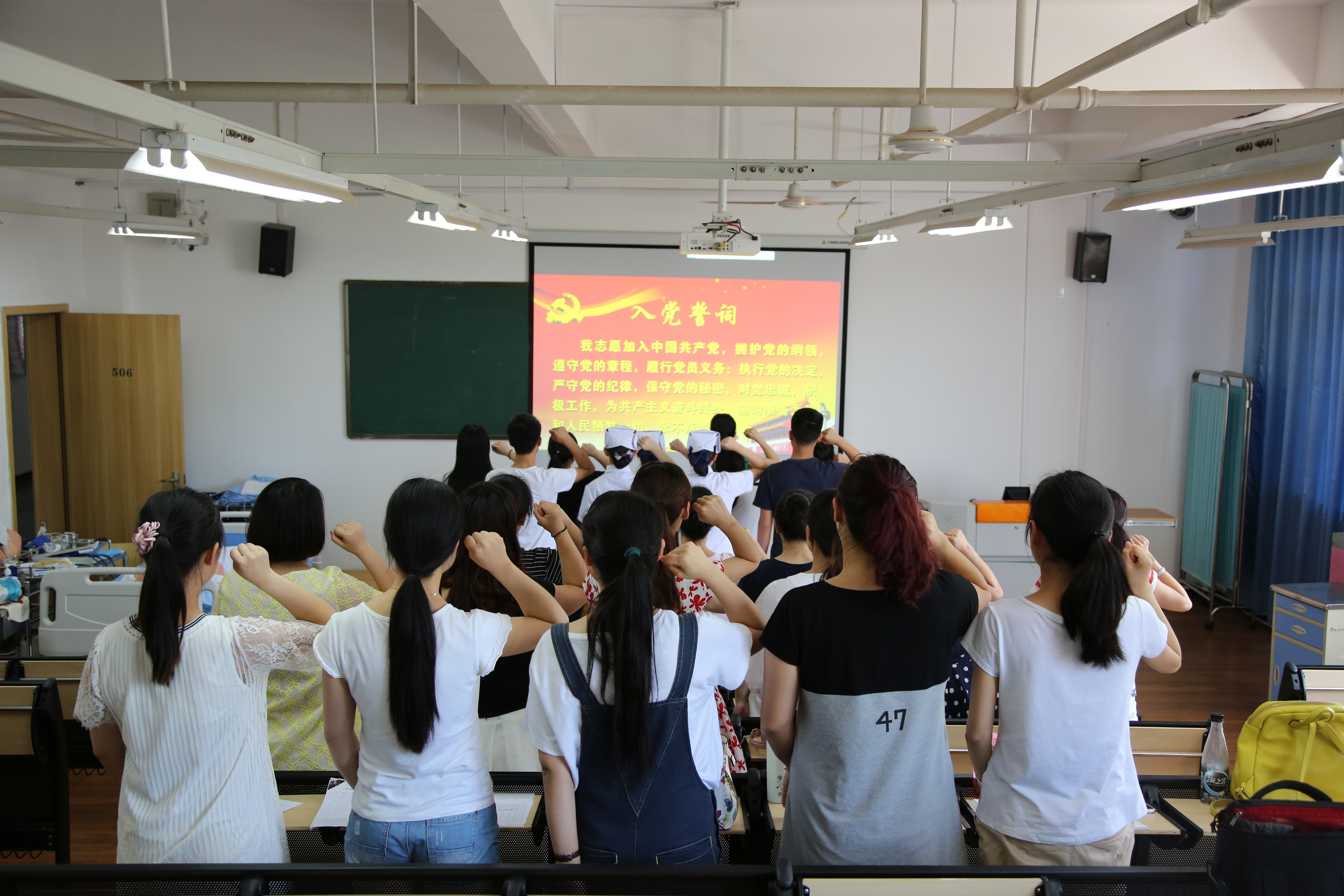 为庆祝中国共产党成立95周年,进一步增强广大党员干部的党性修养,按照公司“两学一做”学习教育安排部署,6月7日,护理系党支部组织全体党员和预备党员在青年路实训楼506举行了“重温入党志愿,重温入党誓词”主题党日活动。
